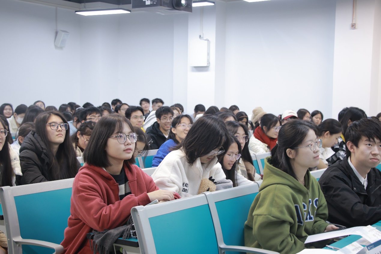 在答疑环节,方秀和程家兴皆对同学们提出的疑惑作出耐心解答。在大类分流后的专业选择这一问题上,他们结合自身经历,详细阐述了如何根据自身兴趣、优势以及未来就业方向来综合考虑专业选择。程家兴提到,在评估自己的兴趣时,不能仅仅停留在表面的喜欢,而是要深入挖掘自己是否有持续研究该专业领域的热情;同时,在考虑就业方向时,要充分了解当前社会对各专业人才的需求趋势,以便做出更加符合实际的决策。