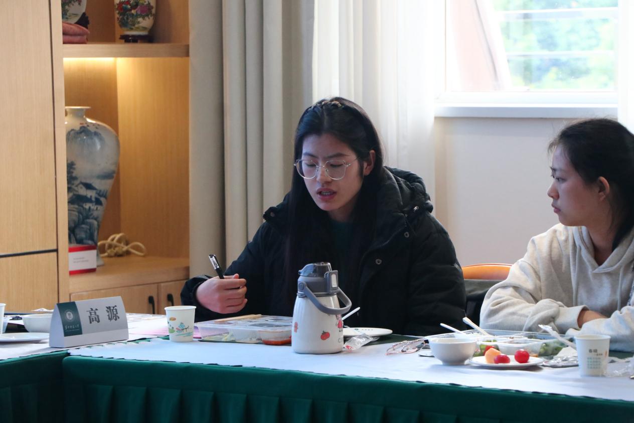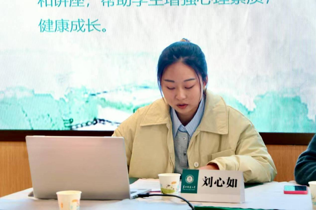 首先,我院民族联络人刘心如对民族工作进行汇报。她从石榴籽精神和民族团结奋进政策引入,具体讲述了学院学生的基本概况。在学院民族团结进步教育工作开展方面,她从筑牢思想之基、突破学业之颈、强化心理支持、精准经济帮扶、推进就业创业五个方面进行了具体阐述,并且通过索婉清与田小丫同学的具体典型案例向大家展示了学院工作的现有成果。此外,她指出在校党委学生工作部民族团结教育办公室的大力支持和学院全体师生的共同努力下,马克思主义学院少数民族学生工作取得了一定的成绩,期待“百尺竿头,更进一步”。