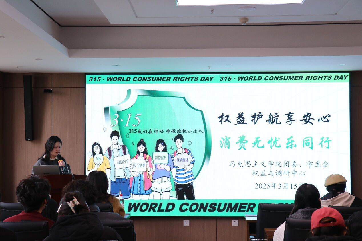 马克思主义学院讯(通讯员 李茜)为迎接国际消费者权益日,增强学生消费安全意识和依法维权能力,马克思主义学院(以下简称“马院”)于3月15日上午在文科综合楼407会议室举办“权益护航享安心 消费无忧乐同行”3.15主题游园会。本次活动由马克思主义团委、学生会权益与调研中心主办。活动通过知识竞赛、互动实践等形式,系统普及《消费者权益保护法》及相关维权知识,吸引了众多学生参与。