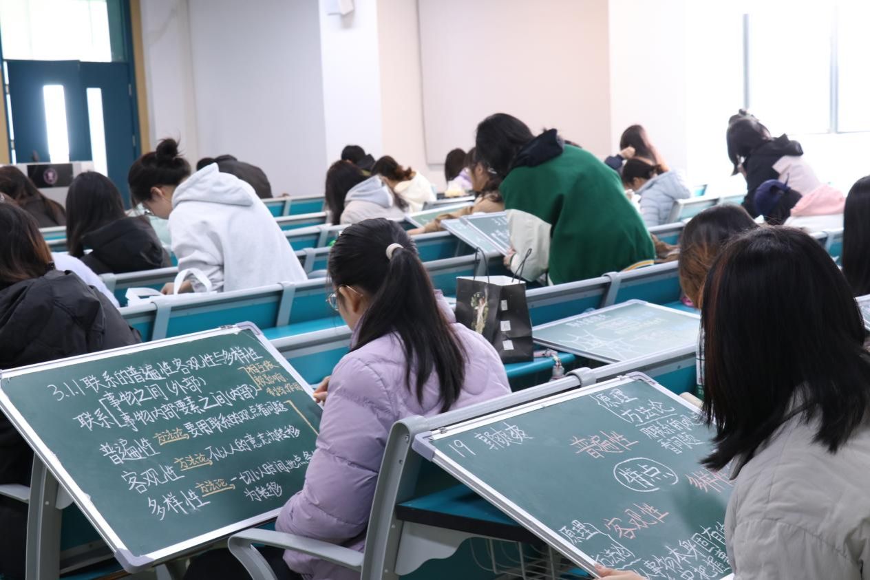 一寸粉笔书梦想,三尺讲台育栋梁。此次比赛以赛带练,促使同学们在反复练习中提升粉笔字书写水平,熟练掌握板书设计技巧,为今后教学筑牢根基。同时,本次赛事为马院师范生搭建起交流互鉴平台,他们切磋技艺、分享经验,在思维碰撞中共同进步,不断成长。