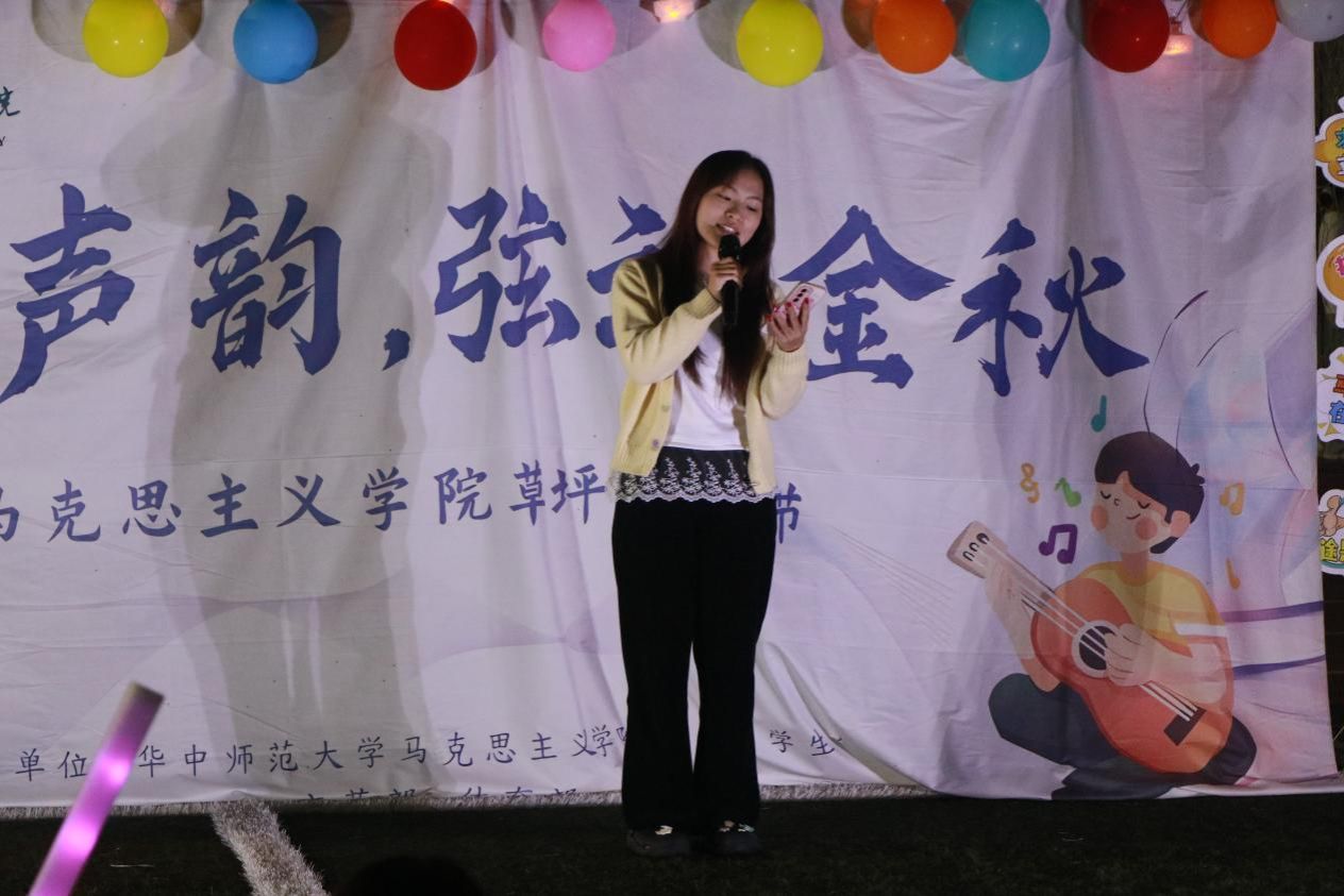 马克思主义学院讯(通讯员 杨文欢;摄影 杨文欢)10月17日晚,马克思主义学院(以下简称“马院”)“草地声韵,弦动金秋”草坪音乐节于佑铭田径场举办。本次活动由马院团委、学生会文艺部、体育部主办,由文艺部成员赵程皓、甘馨蕾主持。参赛选手们各展风采,现场观众积极互动,在灯光的映照下,这场音乐之旅就此开启。
