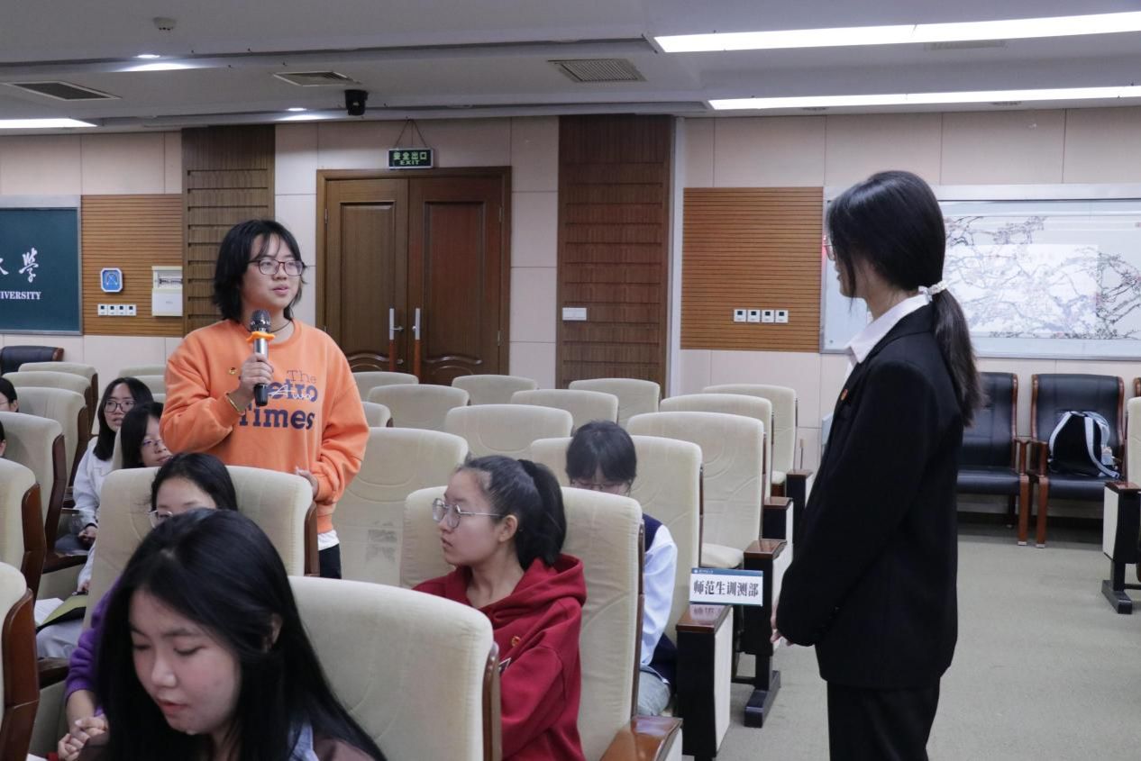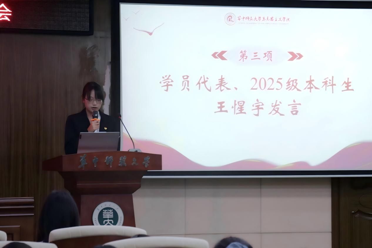 学员代表、2025级本科生王惺宇发言,称大家将以饱满热情和求知态度探索学习,提升能力;同时紧密团结、各司其职,促进个人与集体发展。随后,司陈雨介绍课程内容及考核制度,并提问团学骨干“期待在学生工作中学到什么”。她认真倾听学生回答,做出积极回应,她强调马院团学是一个宝贵的平台,能帮助大家实践成长、结交好友、拓宽视野。