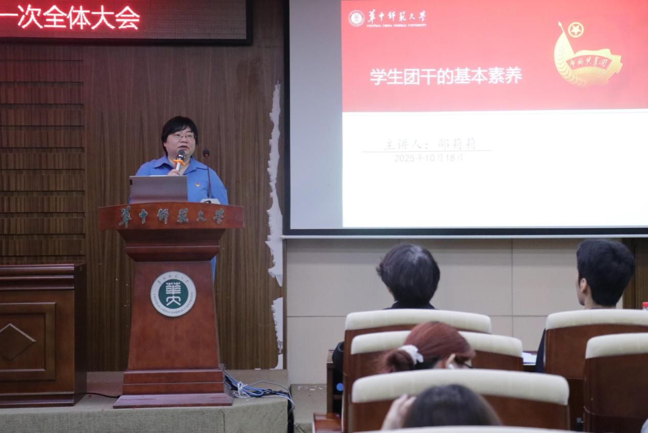 第一次全体大会伊始,李欣致辞。她表示,院团委连续获评红旗团委,离不开全体团学成员的凝心聚力。她对新成员表示热烈欢迎,强调加入团委、学生会能帮助大家锻炼能力、增强平衡学习与工作的信心。同时,她期望同学们强化服务意识、规范礼貌用语、坚守意识形态阵地,学会换位思考与分担任务,为高效开展团学工作筑牢基础。