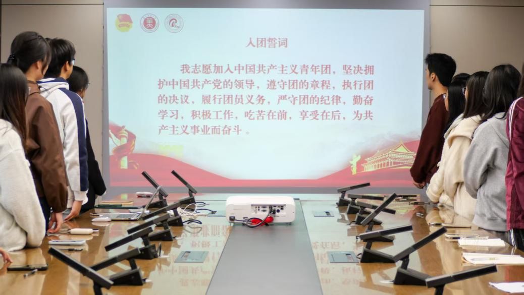 会议随后进入庄严的重温入团誓词仪式,全体团员青年在张书萌的领誓下,目光坚定,以激昂的语调与洪亮的声音,一字一句地重温这深植于心的誓言。这是新时代青年坚定不移的理想信念与奋发有为的精神风貌,是时代后备军最强大的精神力量。
