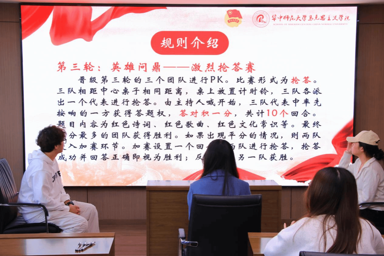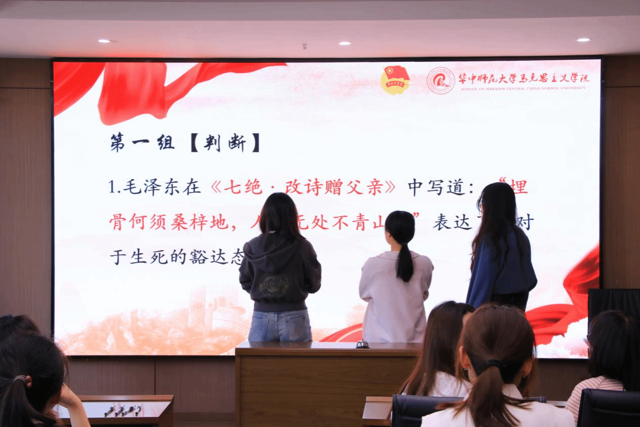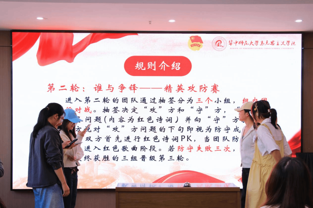 本次活动旨在纪念中国人民抗日战争暨世界反法西斯战争胜利八十周年,引导马院学子回溯革命历史、体悟先辈精神、激发青春力量,以诗歌为媒传递信仰之光。竞赛以三人成团的团体赛形式展开,共有三轮,包括转身淘汰赛、精英攻防赛和激烈抢答赛。