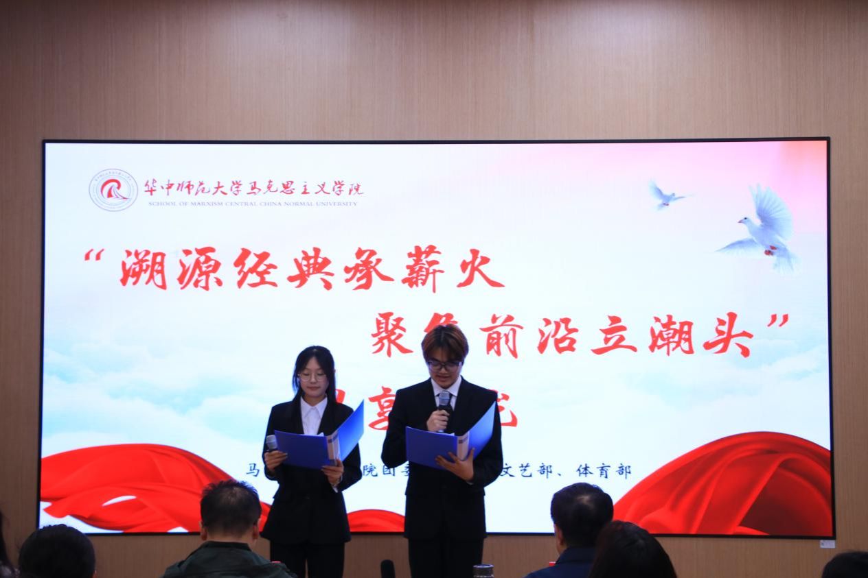 马克思主义学院讯(通讯员 肖荷;摄影 肖荷)4月11日下午,华中师范大学马克思主义学院“溯源经典承薪火,聚焦前沿立潮头”思享沙龙决赛在文科科研楼102教室顺利举行。活动吸引了全校多个学院的15支参赛队伍同台展示,选手们通过主题演讲、情景剧、短视频等多样化形式,围绕经典原著研读与前沿思想探索两大主题展开精彩呈现。马克思主义学院王忠文老师、赵伟老师及童彤出席本次活动并担任评委。