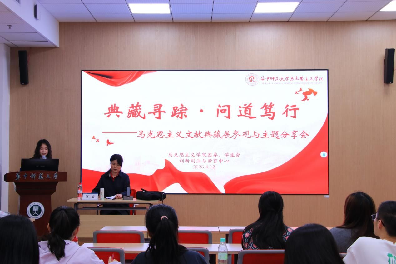 马克思主义学院讯(通讯员 李江彤;摄影 李江彤)4月12日,华中师范大学马克思主义学院“典藏寻踪·问道笃行”马克思主义文献典藏展参观与主题分享会在文科科研楼如期举办。本次活动由马克思主义学院团委、学生会创新创业与劳育中心联合主办,吸引了全校五十余名同学积极参与。