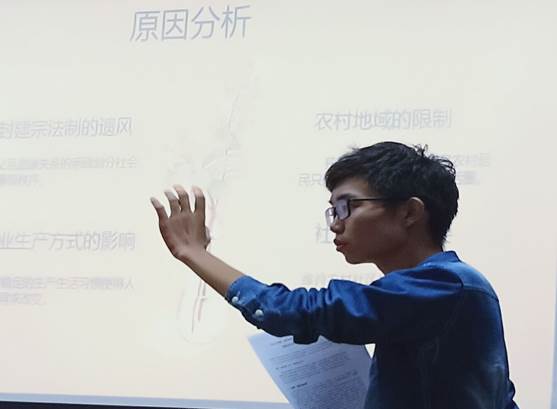 列宁指出:“马克思学说具有无限力量,就是因为它正确。”汪国庆通过《什么是人民之友,以及他们如何攻击社会民族党人》一文,从理论的角度论证了马克思主义的正确性,批判了那些向马克思主义泼脏水的人。“以史为镜,可以知兴衰”,张亦驰分享了《徽州府丝绢案纷争》一文,“大明万历年间,朝廷决策如何出炉,地方执行如何落实,官场规则如何运作,利益之间如何博弈。”在此案中纤毫毕现。向东向同学们分享了自己对中国古代差异格局的看法,引导同学们思考现在社会中由差异格局引起的社会现象,并指出其产生原因:宗法制、地域限制、生产方式等。