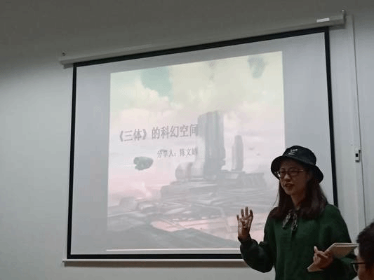 康德说过“这个世界上唯有两样东西能让我们的心灵感到深深的震撼:一是我们头上灿烂的星空,一是我们内心崇高的道德法则。”陈文婧向同学们推荐了《三体》这本书,她提到作者刘慈欣从科学的角度审视人文,从人文的角度诠释科学,冷静地描写了人类可能面临的空前的危机与灾难,且提出了会被认为是极其残忍的各种解决办法。作者的情节构思纠结在两个向度的道德上:一切为了生存的道德与有善恶之分的道德。生存与道德的矛盾在此体现出来。