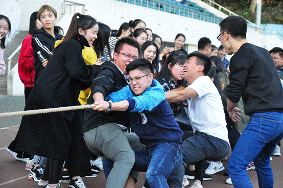 本次运动会共包括螃蟹赛跑、铁甲战车、送鸡毛信、健康趾压板4*50、拔河五项赛事。首先进行的是螃蟹赛跑,此活动需两人背对背夹球呈螃蟹状横着向终点跑去,先完成的三队获胜。第二项是铁甲战车,每队由五人组成,此项活动是将条幅制作成圈后,由各位队员脚踩条幅进行一百米赛跑,时间短者获胜。第三项活动为送鸡毛信,比赛是以接力的形式进行,先由第一位同学记忆十位数字后原地转三圈,接着迅速跑向第二位同学并完整的复述出数字,最后由第二位同学跑向终点完整地将数字告诉裁判为准。第四项活动为健康趾压板,同样以接力形式进行,一队4人,每个趾压板间隔为50厘米进行4*50接力。最后一项活动为五院拔河比赛,两两对比最后角逐。本次活动最终结果为体育学院、马克思主义学院、物理学院分获一二三等奖,教育学院与心理学院分获道德风尚奖、精神文明奖。
