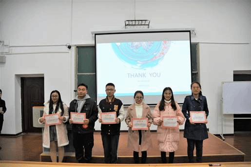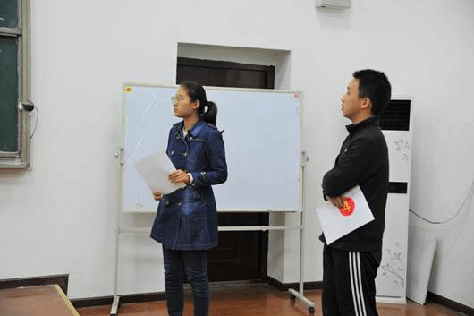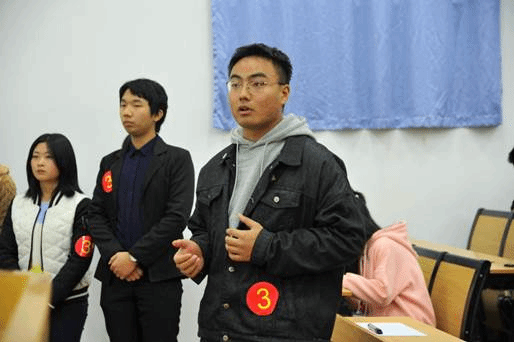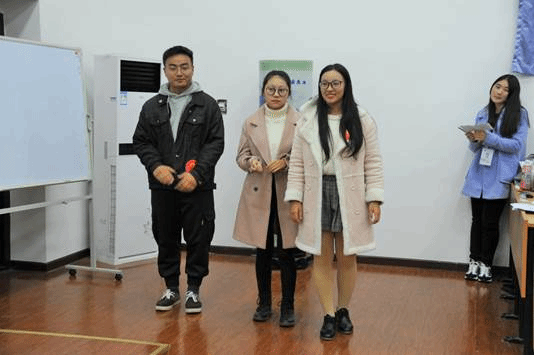 在第一环节小组风采展示中,我院队长甄飞扬以幽默风趣的语言介绍了我院代表队成员,他们分别是王慧婷、王银凤、王刘、张郅和王霞。