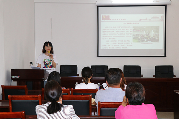 宣讲团成员谢欣雨结合家乡贵州的脱贫成果和鱼池村的发展现状,从脱贫攻坚的总体要求出发,联系习近平总书记提出的“两不愁三保障”政策,全面阐述了打好脱贫攻坚战的九个要求。她通过鱼池村的厕所革命、脆枣园旅游产业等发展生产脱贫中取得的新成就为当地村民展示了从“输血型”脱贫转变至“造血型”脱贫的新思路。