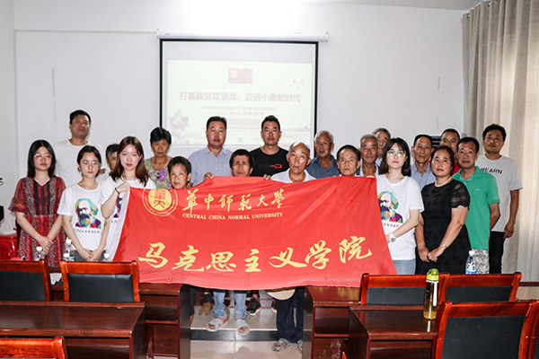 马克思主义学院讯(通讯员 田雨馨;摄影 柯雨彤)7月17日,为把党的理论讲明白讲清楚,走进基层贡献青春力量,马克思主义学院团委书记陈陈瑾带领青马红心暑期宣讲团赴湖北省钟祥市柴湖镇鱼池村开展了主题为“打赢脱贫攻坚战·迈进小康新时代”的理论宣讲活动。柴湖镇鱼池村村支部书记何辉及当地村民参与本次宣讲活动。
