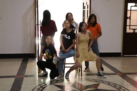 除唱歌类节目外,更不乏精彩的舞蹈节目,19级研究生薛姣、孙月、彭钰美、孟恒艳及陈思琪同学表演了芳华舞蹈《沂蒙颂》,绒花飞舞旋转十分精彩。19级本科生洪倩同学等六人准备了酷炫的韩团舞蹈《uh oh》,舞出了青春的活力。