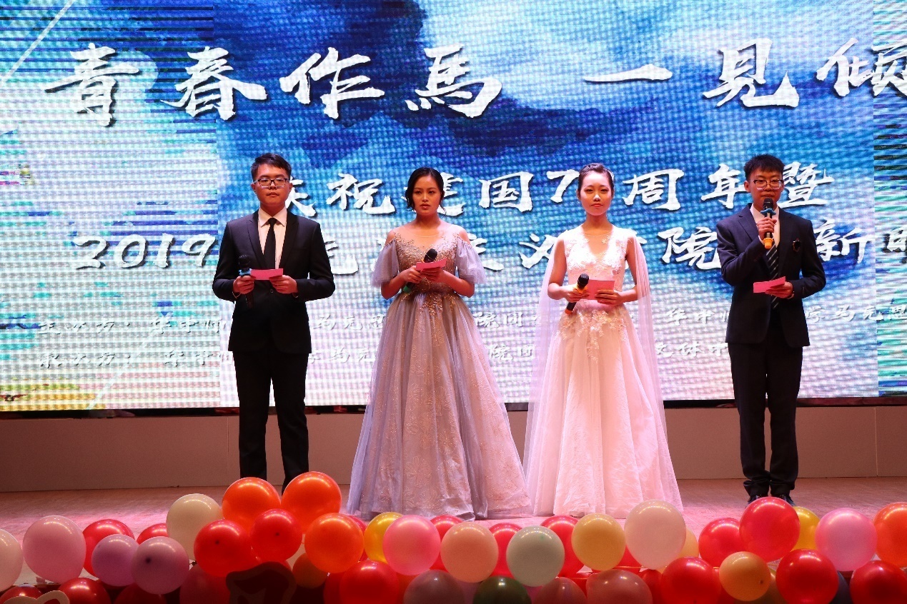 马克思主义学院讯(见习记者 方思佳;摄影 成靖 陈雨茗)10月18日下午,庆祝建国70周年暨2019年华中师范大学马克思主义学院“青春作马,一见倾新”迎新晚会在大学生活动中心五楼顺利举行。马克思主义学院党委书记孙永祥、党委副书记邵莉莉、1902班班主任张启彬、本科生辅导员王海龙、陈陈瑾、赵芸逸、陈远瞻,研究生辅导员丁琳、唐慧颖、研究生兼职辅导员缑一鸣。此次晚会由“青春·聚梦”、“青春·同行”、“青春·远航”三部分构成,展示了马院学子的青春风采。此次晚会由18级本科生连洪、蔡方,19级本科生李钟文、董超主持。