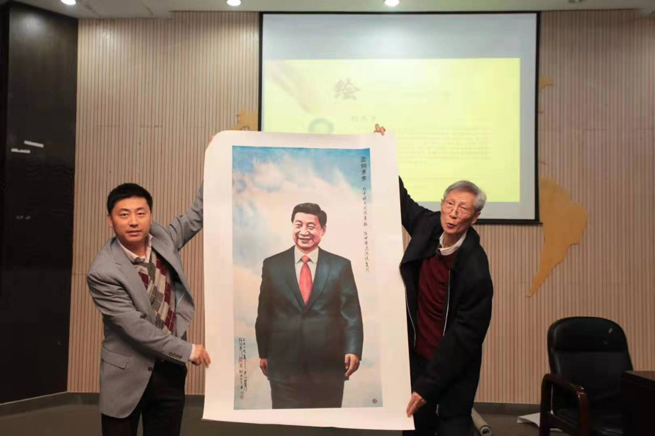 在现场,刘三多先生特意进行了作品展示,其中有四幅作品集更是达到能够绕场一周的长度,先生对其逐一进行了详细地讲解,现场气氛热烈,师生们更是叹为观止。随后,先生又一一展示了王争艳、孙东林、吴天祥、董明等道德模范系列作品,并且讲述了每一位英模的感动故事,无不饱含着他对英模人物的敬佩。此外,先生还当场赠送了我院一幅名为《行走中的习近平》画作,在此致以最诚挚的感谢。在话语的最后,先生分享了他的80岁人生感悟,其蕴含的哲理更是引人深思,发人深省。