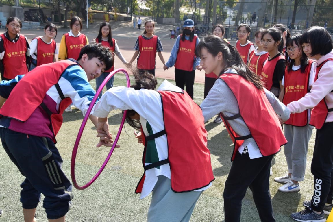 活动开始前,本次素质拓展活动的教练员用风趣幽默的讲话活跃了现场气氛,“长城不倒”“成语对决”等热身运动迅速将大家带入状态。之后,教练打破原有的部门建制,通过报数将所有人员重新分为红、黄、绿、蓝四队进行游戏。四组队伍分别挑选了队旗、拟定队伍名称、确定队伍口号,展示了各具特色的队伍面貌。第一轮游戏侧重于提升学生的协作配合、观察反映能力,通过观察图片猜测数字,在有限的时间内积分高者获胜。四组队伍分批次观察图片,协作商讨,在紧张刺激的时间争夺中红队取得了暂时领先的积分。紧跟而来的第二轮游戏则充分考验了学生的肢体协调、团队配合水平,队员们在解手链、传递高尔夫球等游戏中逐渐磨合,配合愈发娴熟。最后第三轮游戏将本次活动推向高潮,指压板道具的运用激励队员们齐心协力向前奋进。伴随着队员们的欢呼声,游戏比赛环节最终结束。积分结算后,红队与黄队积分并列,教练通过传统又公平的“剪刀石头布”最终确定了本次活动红队荣获第一名。