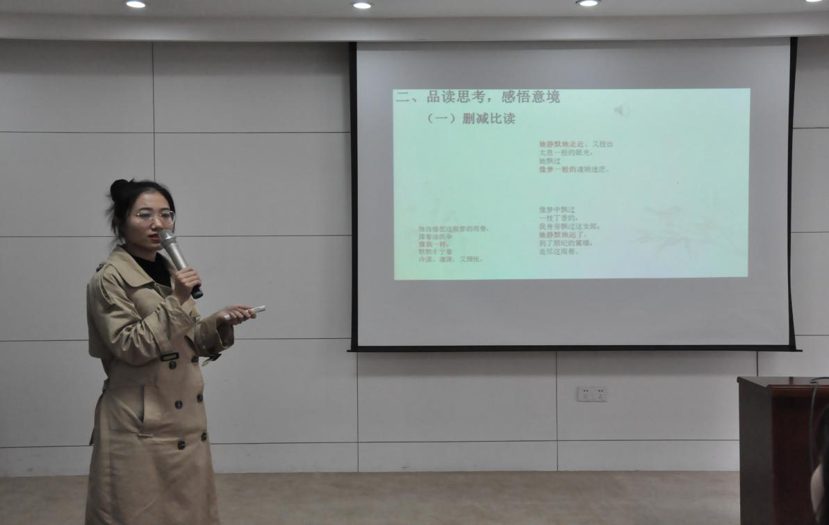 本次决赛分课堂试讲和答辩两个环节,共10分钟。主持人宣布比赛开始后,比赛有序进行。十三号选手陈雨以生活中熟知的“真香事件”为切入点,为我们讲述了《矛盾的同一性》,她娴熟的教学技巧、流畅而活泼的语言表达赢得了评委的一致认可。八号选手商梁给大家带来了一堂思路清晰的生物课,专业知识扎实、授课思路清晰。七号选手孟倩为我们带来课文《荆轲刺秦王之易水诀别》,表达流畅、声情并茂。三号选手王丽华从当下时事热点“双十一”切入,为我们讲述了与每个人都息息相关的《消费水平的因素之可支配收入》。二号选手任蕊鑫讲授的《实践是认识的基础》,教学内容生动活泼,配以有趣的视频,引人注目。还有其他各位选手教学内容多种多样、教学风格各具特色,有别开生面、独具特色的政治教学,也有绘声绘色的语文教学。随后,评委聂梦老师为选手做了综合点评。老师对各位选手充分准备表示了肯定,认为此次比赛对在场的每位同学都有一定的学习借鉴作用。此外,聂梦梦老师强调,对于答辩环节的问题可以更深入思考,不仅仅关注问题本身,并鼓励同学们在课堂中注重知识的传授的同时,也要营造快乐的学习氛围。最后,本次比赛的结果为:陈雨获一等奖,商梁、韩旭、柯焱和孟倩进入前三名。