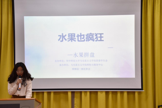 维权与服务中心的部委则从校园饮食文化的角度出发,提出举办“水果也疯狂-水果拼盘大赛”的构想,并将活动细化为:“猜猜我是谁”与“创意大比拼”两部分。