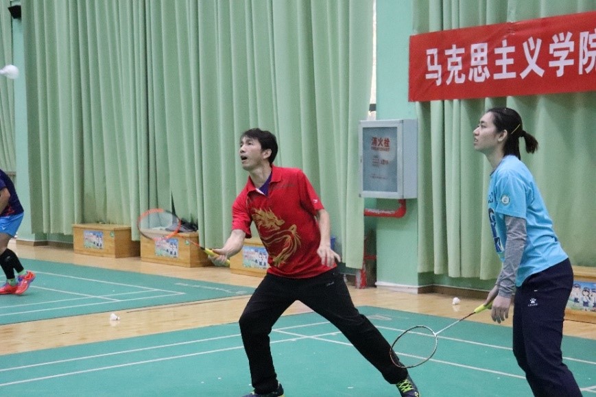 马克思主义学院讯(通讯员:陈晨 孙福泽; 摄影:杨实)12月7日下午,华中师范大学马克思主义学院第一届师生羽毛球比赛在乒羽中心羽毛球馆举行。本次比赛由全院师生共同参与,参赛队员共38人,教职工、博士生、研究生和本科生均有参加。