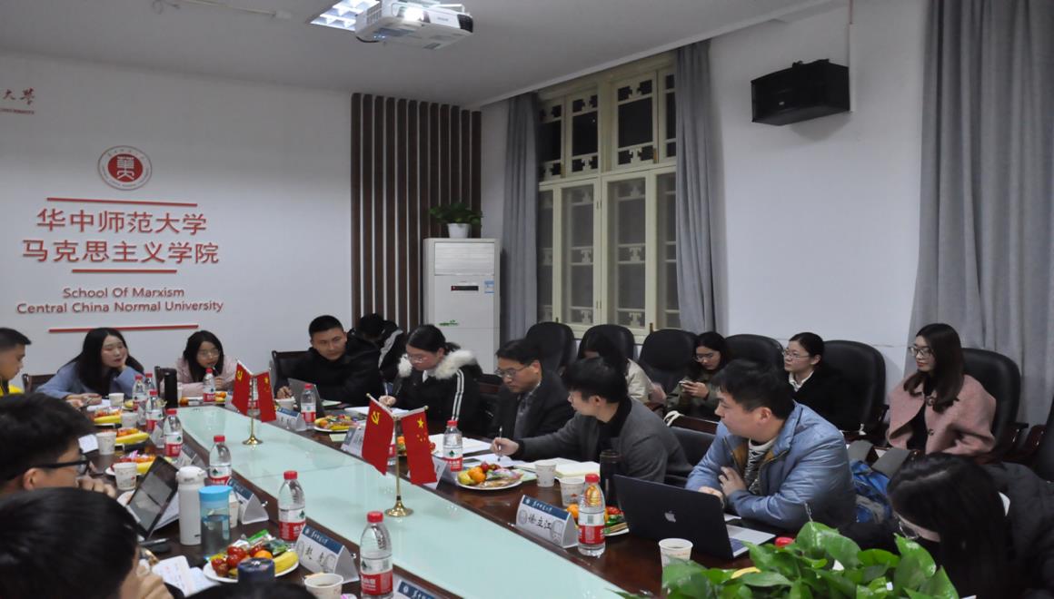 马克思主义学院讯(记者 孟恒艳;摄影 高瑜茜)2019年12月14日下午18点30分,由华中师范大学研究生会主办,马克思主义学院研究生会承办的第六届“群贤毕至•俊采星驰”跨校博士生沙龙活动在马克思主义学院二楼会议室举行。武汉大学、华中科技大学、中国地质大学、中南财经政法大学以及华中师范大学几所高校的九位优秀博士生受邀参加此次博士生沙龙。我校马克思主义学院副教授、湖北省科协委员的高扬帆老师,马克思主义学院副教授、马克思主义发展史教研室主任孟飞老师作为点评嘉宾也应邀出席,部分研究生到场聆听。