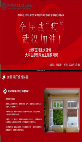 (马克思主义学院讯 通讯员 陈陈瑾 刘孟迪)为深入贯彻落实习近平总书记关于防控新型冠状病毒感染肺炎疫情的重要讲话精神,深化学生防疫思想认识、坚定战胜疫情的信念与决心,响应教育部“停课不停学”的号召,马克思主义学工组充分利用线上媒体平台,积极谋划,精心设计,精准帮扶,切实做到“停课不停教、停课不停学”。