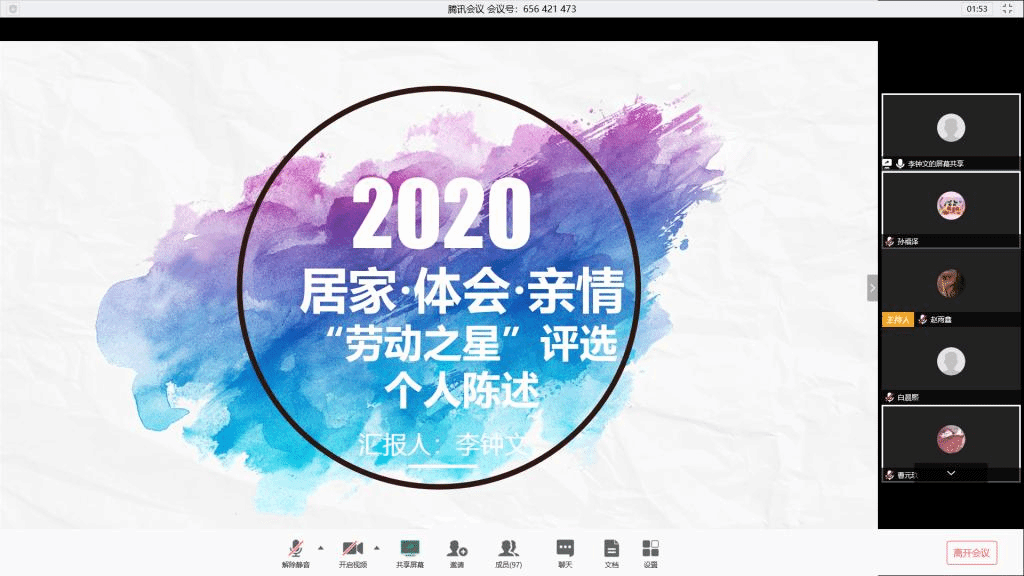 19点整,活动正式开始。李钟文、方思佳、高琴等八名“劳动之星”通过展示PPT的形式,讲述自己的劳动故事,分享劳动感悟。