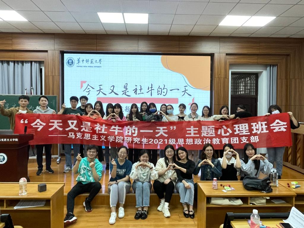 5月20日,2021级研究生思想政治教育团支部于马克思主义学院1101教室顺利开展了“今天又是社牛的一天”主题心理班会。本次主题心理班会包括心理健康知识宣传教育和趣味活动。在环环相扣的主题班会活动中,心理健康教育发挥着潜移默化的积极作用,在及时了解同学们的心理困惑并有效的对其进行心理疏导的同时,也让同学们能够真实感受集体的关爱与温暖。