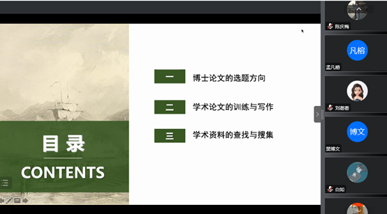 马克思主义学院讯(通讯员 王丹竹)为有效提高我院2022级博士研究生学术研究能力,进一步推进博士班集体建设,2022年10月23日晚上7点,博士研究生2022级党支部和“天马行空”博士学术工作坊共同举办了题为“博士学术训练与规划”的线上讲座交流活动,博士研究生2022级班主任雷禹老师和全体同学共同参加了次此活动。