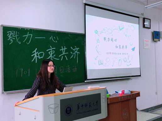 马克思主义学院讯(通讯员 朱晨歌 黄丽平)10月19日,我院1701团支部与1801团支部于8308教室开展了以“戮力一心,和衷共济”为主题的团日活动,旨在促进新老生交流互助,共同进步。此次活动邀请18级辅导员陈陈瑾一同参与。