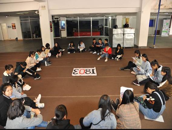 活动开始,由1803班团支书汪彤向同学们介绍此次活动,“以班级交流会的形式,解答新生疑惑并拉近新老生之间的距离。”