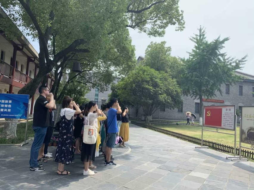 在正式参观中共五大会址纪念馆之前,此次党日活动的带队人,彭嘉琪同志带领全体党员同志在馆内重温了入党誓词。