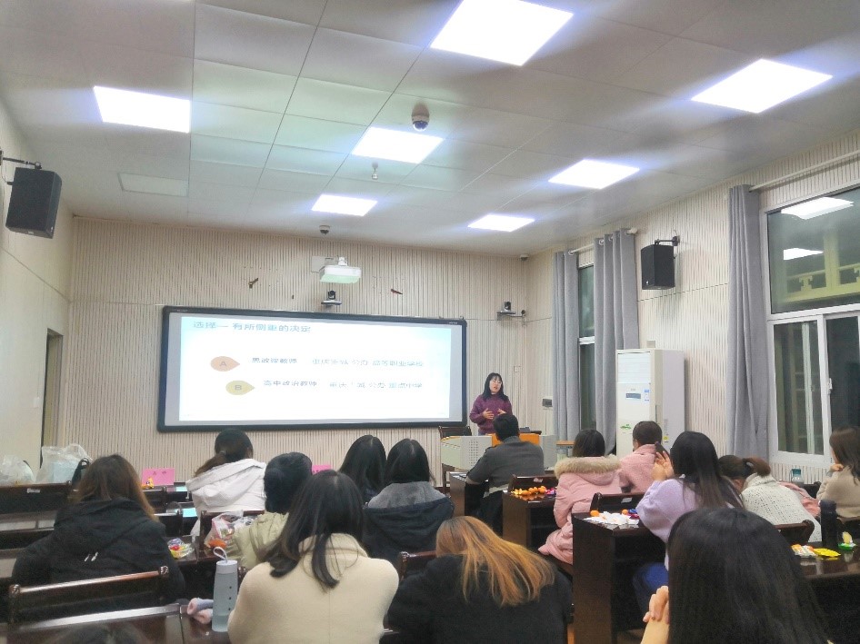 心理委员谭亚男与同学们进行心理健康的互动。谭亚男首先带领同学们进行伯恩斯抑郁的测试,针对同学们的测试得分进行结果的分析,并向大家推荐了著名的克服抑郁情绪的书籍:《伯恩斯新情绪疗法》。作为心理委员,她希望同学们能够克服学业、求职、人际交往等方面的焦虑,战胜抑郁,做一名身心健康、积极阳光的研究生。