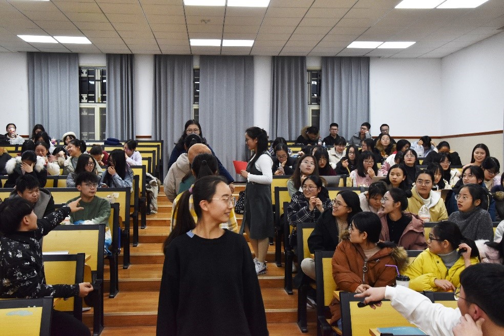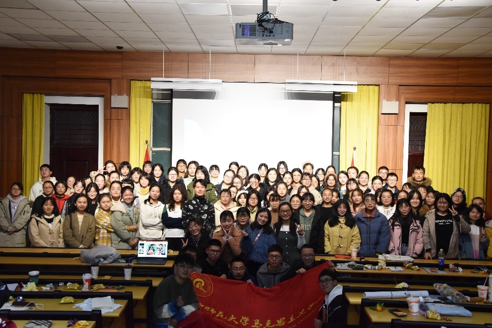 马克思主义学院讯(通讯员 陈晨 孙福泽; 摄影 孙福泽)12月22日,以“冬至阳来,青春嗨森”为主题的马克思主义学院2019级本科生2020年元旦晚会在一号楼1101教室举行。本次晚会由赵静、陈晨主持,2019级本科生辅导员陈远瞻应邀出席。