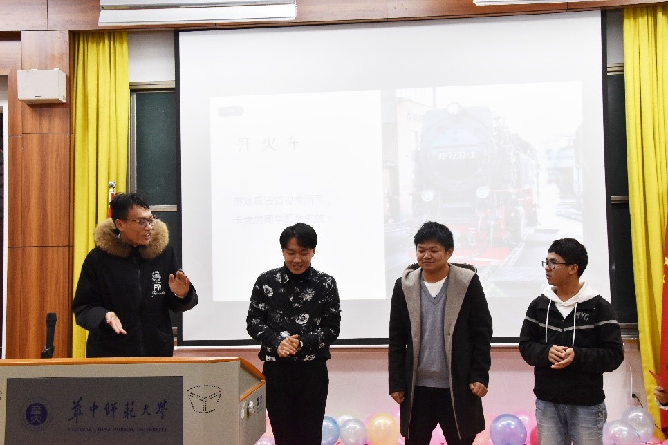 在王华影的《年轮说》、董超的歌曲串烧后,“看这边”、“开火车”、“快乐传真”、“谁是卧底”等游戏环节接续到来。辅导员陈远瞻也加入到游戏中去。同学们时而沉浸在动人的歌声中,为演唱者打call;时而踊跃地参与活动,在游戏中开怀大笑。
