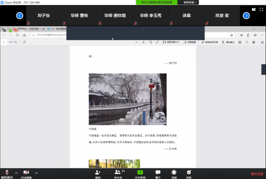 本次团日活动将两校同学分为七组,自选主题进行交流,并依托ZOOM平台,以音视频、屏幕分享的形式进行相关主题的分享讨论交流,两校马院学子纷纷发表自己的见解,讨论热烈。积极学习有关疫情防控的基础知识,确立“不信谣、不传谣”的责任担当,分享居家抗疫的生活心得,调节战疫心态,坚定信心。同时还交流了阅读学习和师范技能提升的资源、方法。