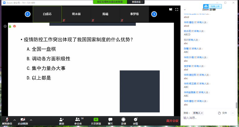 学习和分享后,两校同学开展了有关疫情防控与思政专业等方面的知识小竞赛,比赛激烈。同学们在有趣的活动中进一步巩固了相关知识,收获颇丰。