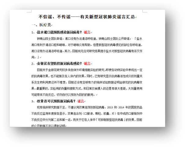 主题二:不信谣,不传谣——有关新型冠状肺炎谣言汇总