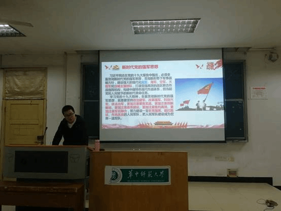 马克思主义学院讯(通讯员 朱阿妹)为了深入理解党的新政策、新举措,提升宣讲团的理论深度,华中师范大学习近平新时代中国特色社会主义思想学生研习社以“关注时政要闻,夯实理论根本”为主旨开设了两周一次的社内理论学习活动。4月17日,研习社开展了第二次理论学习活动,本次学习的主讲人是研习社成员吴波锐,主题是“领悟强军思想,奏响强军战歌”。