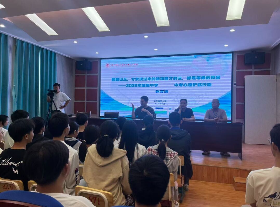 马克思主义学院讯(通讯员 徐秉国;摄影 易彩林)为帮助学生调整心态,提高应对焦虑能力,服务教育高质量发展,6月3日,由华中师范大学马克思主义学院承建的“理论热点面对面”武汉姚家集实践基地开展中考心理护航讲座。讲座由华中师范大学马克思主义学院赵芸逸博士主讲,姚家集街宣传统战委员周大明、姚集教育办公室刘启明、姚集中学校长赵辉、年级主任、各班班主任以及姚集中学全体九年级学生参加。
