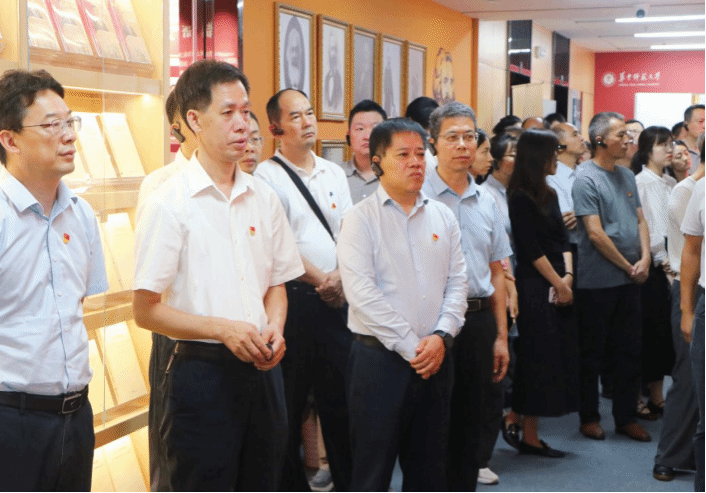 活动进入第三个环节——参观华中师范大学校史馆,讲解员的叙述娓娓道来,既严谨翔实,又充满温度。从清末文华书院的肇始,到抗战西迁的弦歌不辍;从新中国成立后的蓬勃发展,到新世纪以来的改革创新,一幅波澜壮阔的百余年教育画卷在眼前徐徐展开。大家时而聆听讲解,时而驻足品鉴,在珍贵的照片与实物前交流感悟,在历史与现实的交织中深刻感知这所百年学府如何与国家民族同呼吸、共命运,如何在一代代教育家的接续奋斗中铸就辉煌。