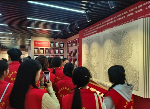 10 月 14 日下午,武汉民政职业学院40名学生在黄秀芬、张琦琳老师带领下,赴华中师范大学参观 “信仰之光 — 马克思主义文献典藏展” 湖北巡展,近距离感受马克思主义的真理光芒与实践力量。