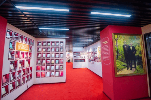在讲解员的带领下,武汉民政职业学院的老师与同学们开启了沉浸式参观,依次深入 “真理力量 薪火相传”“手稿藏书 经久弥珍”“经典巨著 思想丰碑”“‘两个结合’最大法宝” 四大展区。展馆资料丰富且极具价值,既有马克思恩格斯原始手稿、120 多个版本的《共产党宣言》等珍贵文献,也有泛黄的早期马克思主义著作复刻本、记载历史变迁的老照片与还原重要历史场景的实景模型;同时搭配多媒体互动屏动态演示,让抽象的马克思主义理论变得直观可感。