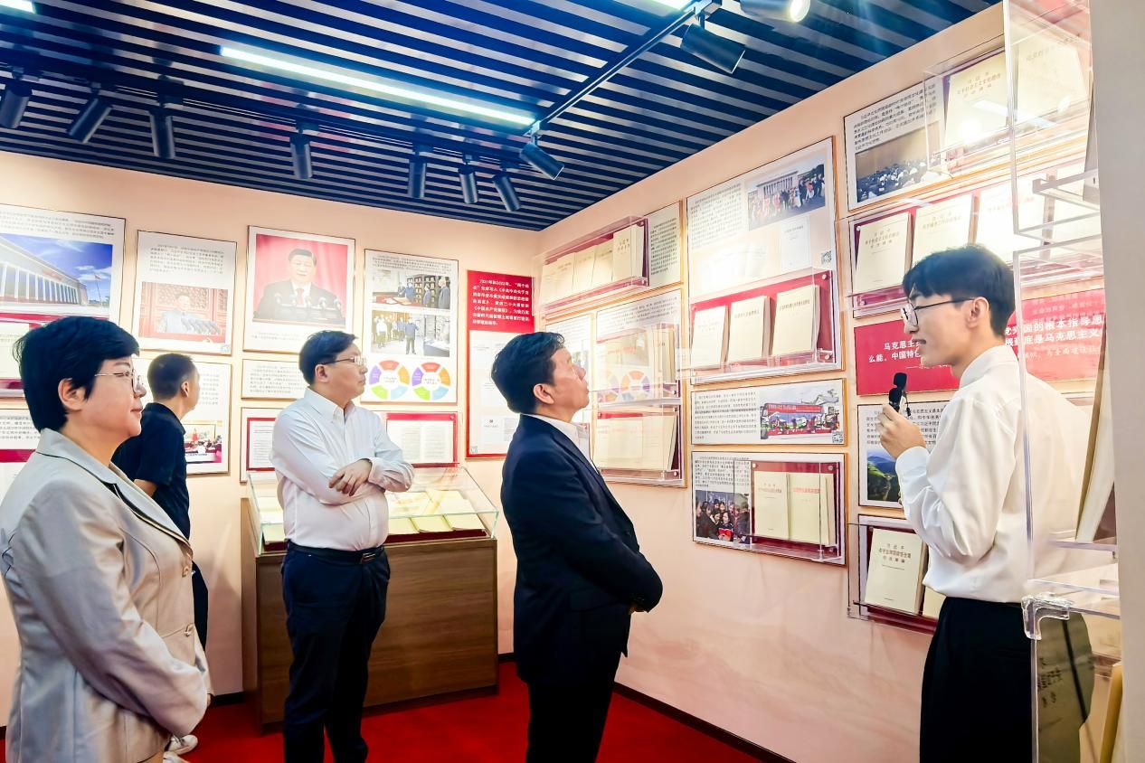 最后,参观团来到“马克思主义学院成果展”展区。展区系统展示学院在全国重点马克思主义学院建设中的丰硕成果,从学科建设的突破、人才培养的成效,到科学研究的进展、教师队伍的壮大,通过丰富图片与实物展示,直观呈现学院在理论探索与实践育人领域的蓬勃发展态势。