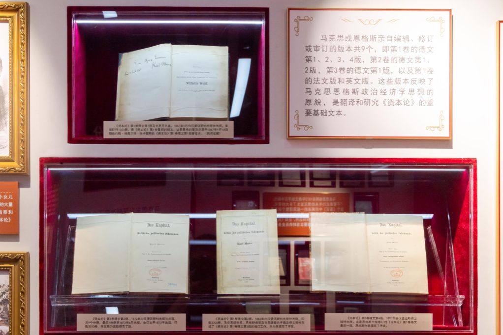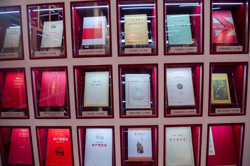 展柜里的文献不必细辨篇目,单是斑驳的封皮、批注的墨迹,已将信仰的重量铺陈开来。从《伦敦笔记》的墨迹中,读出的是马克思主义政治经济学理论的形成轨迹;从各国语言的《共产党宣言》版本中,感受到的是无产阶级政党理论的历史穿透力……