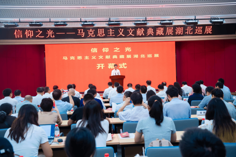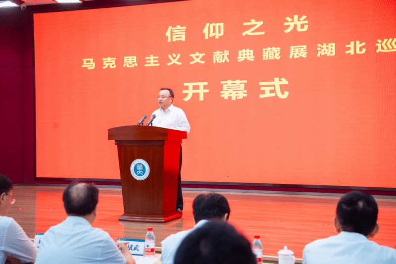 王均伟指出,党的十八大以来,习近平总书记围绕加强马克思主义理论研究和建设,发表一系列重要论述,提出一系列明确要求。举办马克思主义文献典藏展并组织巡展,是认真贯彻落实习近平总书记重要指示精神和党中央决策部署的重要举措,也是服务党和国家工作大局、更好宣传党的创新理论的务实探索。此次马克思主义文献典藏展来到红色底蕴深厚、革命文脉绵长的湖北,既是对中国共产党光辉历史的深情回望与崇高致敬,也是对中国共产党人信仰信念的坚定传承和郑重宣示,具有深刻的政治意义、历史意义和教育意义。