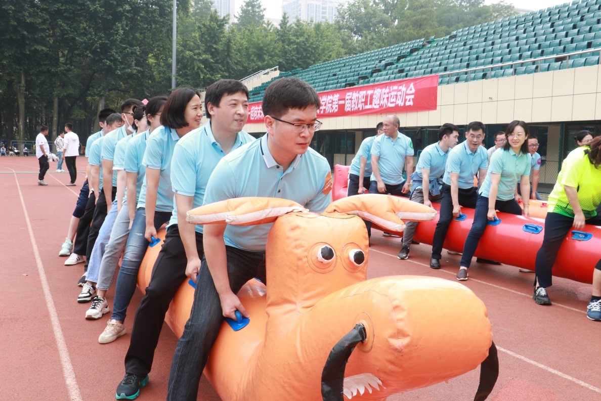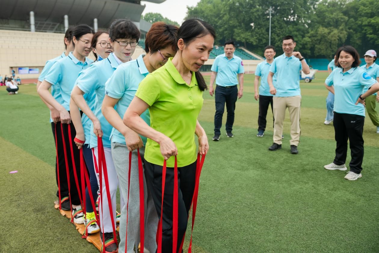 赛场上,加油助威声此起彼伏,参赛教职工都摩拳擦掌,不甘示弱。在快乐毛毛虫中,运动员们节奏整齐,动作敏捷;在趣味投篮与趣味投壶中,运动员们出手坚定,欢欣雀跃;在趣味高尔夫、滚铁环中运动员们相互支持,相互鼓励;在齐心协力、瑜伽球竞走中运动员们配合默契,自信满满。
