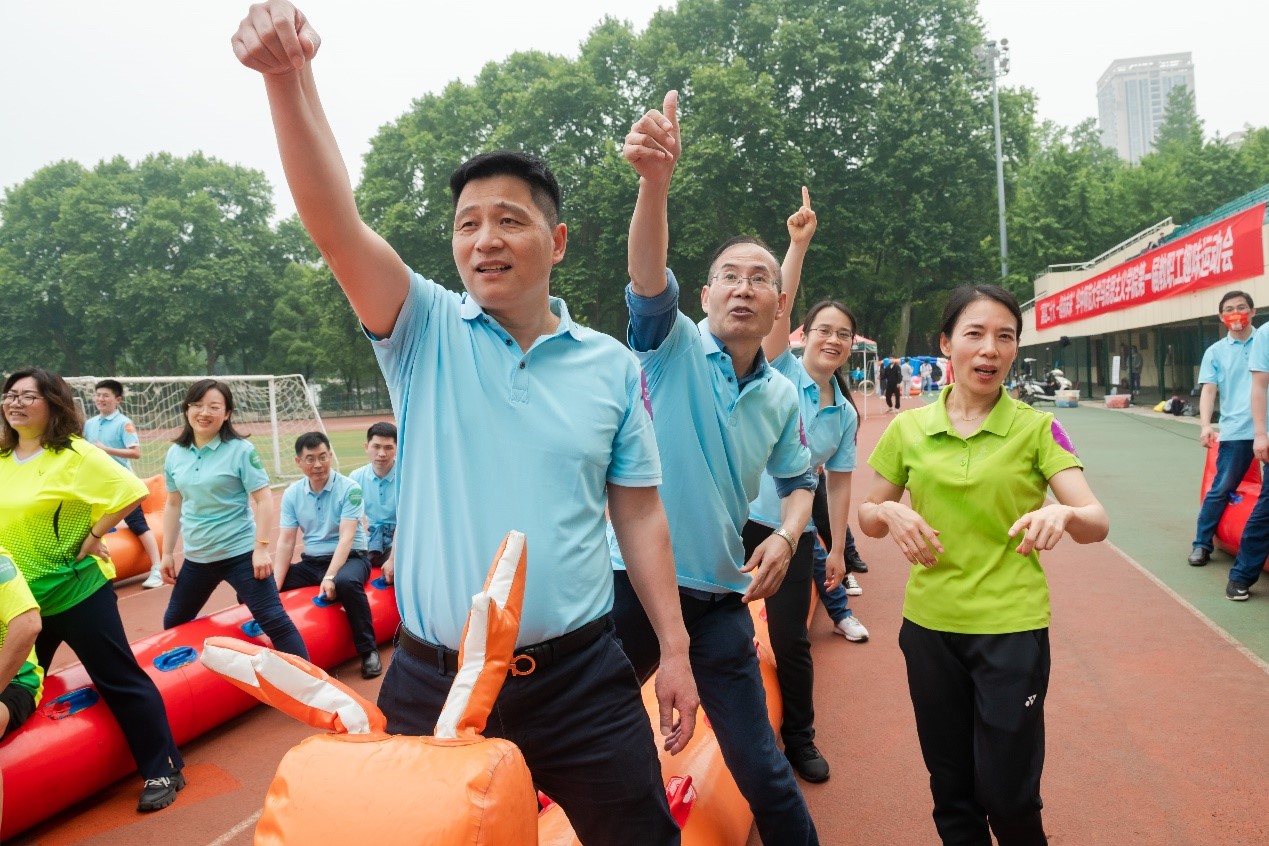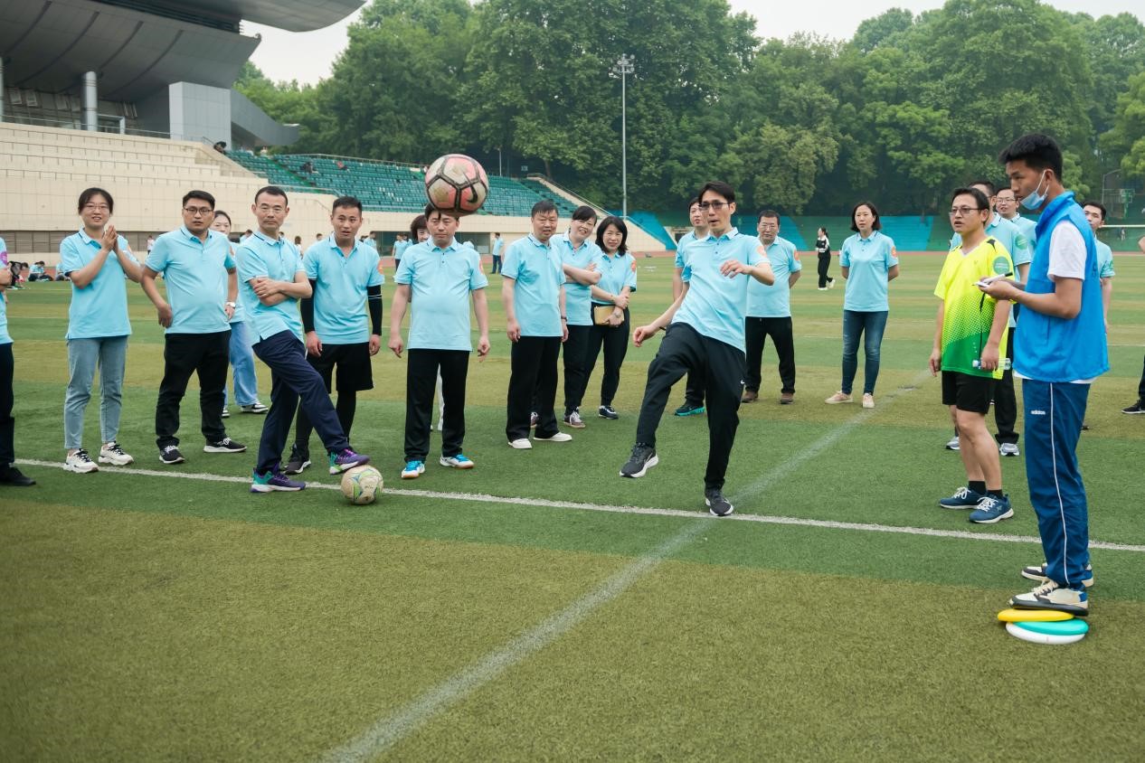 运动会开幕式前,田径场上早已热闹非凡。参加趣味运动的全体教职工在四个组长的带领下,随着教练的统一指挥,开始“鼓励舞”、“刷卡舞”等富有趣味的集体热身操。随后,运动会开幕,学院党委书记孙永祥致辞,他希望全体教职工享受运动、享受快乐、收获健康,切实放松身心,尽情运动。校工会副主席戴文波出席开幕式,与学院老师们一起参加热身操。