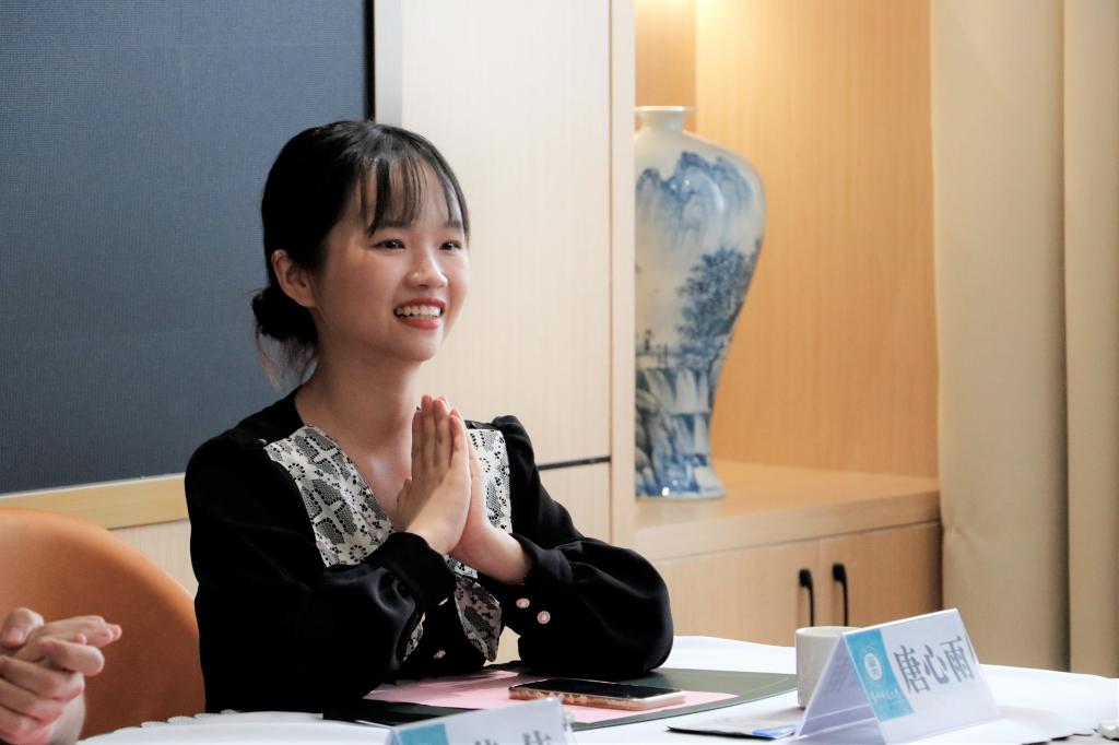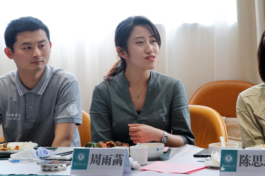 午餐会上,与会毕业生畅所欲言,结合学院就业工作、人才培养工作、管理服务工作、校园文化生活、疫情防控工作等谈体会,提建议。2018级本科生吴宇珊分享了自己丰富的学生工作经历,比如在团委学生会、恽代英箐英学校以及学术科研比赛方面的经历都使她成为了更好的自己;2018级本科生梁紫姣、唐心雨、郑彩玉以及学科思政专业的赵亚亚、张也、陈晓彤则围绕考研、就业等方面,交流探讨了编制、实习、考公等问题;2018级本科生黄伟和2019级中共党史专业陈思琪则表示,将选择参军入伍,实现对理想的坚守;2018级外国哲学专业李永茂则向同学们介绍了自己坎坷的学业经历,分享了自己思想转变的过程;2019级思想政治教育专业研究生程思源和周雨菡则谈到了自己作为多个单位多个岗位的工作经历,在桂子山时间很多年,在多个学院兼职辅导员或者多个岗位助理工作,更让他们体会到马院作为”桂子上山的第一院“的自豪感和成就感,马院各项工作确实证明了无愧于“”桂子山第一学院”的称号;2018级韩知航分享了自己申请出国留学的想法。毕业生代表们表示,衷心感谢学院的培养,老师的培育和身边同学的支持与帮助。另一方面,他们也希望学院领导能够加强对学生学术科研的培养,比如增设学术科研的论文指导专业课,开展更多就业指导讲座和师范生的经验交流讲座,加强马院资料室和阅览室的利用,在基础设施方面,为学生提供良好的面试环境和空间等等。
