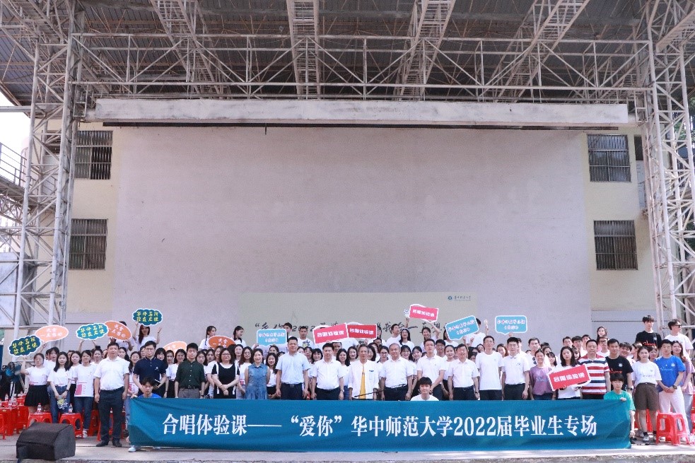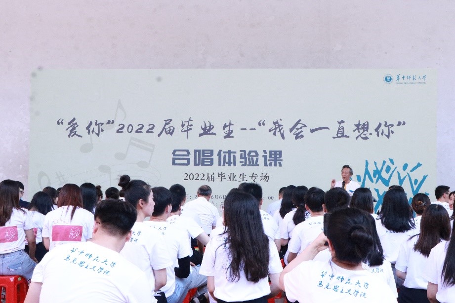 马克思主义学院讯(通讯员:徐婷婷;摄影:席雨欣)6月6日,“合唱体验课一华中师大2022届毕业生专场开幕暨马克思主义学院毕业季活动发布会”在学校电影场顺利进行。学校美育(艺术)教育中心主任田晓宝教授、党委学生工作部副部长、思政处处长李刁、本科生院副院长张静、学校校友办公室主任郭庆、马克思主义学院党委书记孙永祥、院长万美容、正处职组织员董俊敏、学院党委副书记邵莉莉等出席,以及来自马克思主义学院200余名本硕博毕业生、天空合唱团成员等参加了本次活动。活动由马克思主义学院辅导员蔡珺恺主持。